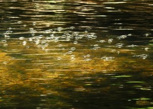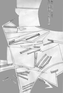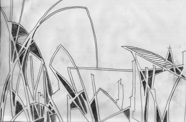 I: «La superficie la habitan en grupos», si analizamos esta imagen se reflejan claramente dos elementos, uno horizontal, que es la base de asentamiento, que puede ser agua,(como en este caso), tierra, piedra, o incluso espacio suspendido. Y el elemento que emerge,con piezas únicas, con ubicaciones circunstanciales, pero que responden a la idea de permanecer en el medio más o menos agrupadas, pero todas conectadas, interrelacionadas y conformando una propuesta singular.